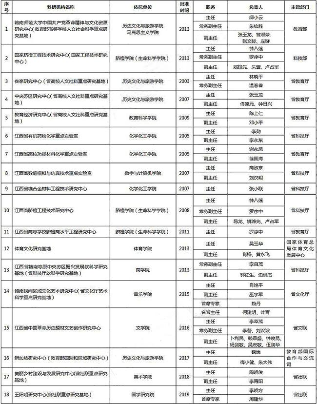 国家级科研平台:赣州市心脑血管疾病防治重点实验室(筹)、国家中药现代化工程技术研究中心客家中医药资源研究分中心、国家老年疾病临床医学研究中心赣南分中心