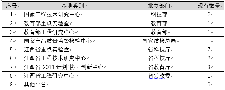 (2) 江西理工大学自然科学类科研平台(基地)数据统计