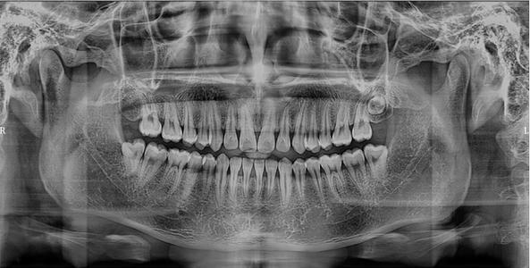 当然,还有一些问题无法通过肉眼看到,医生会建议你拍张片子,观察牙齿的深度问题,比如这样的: