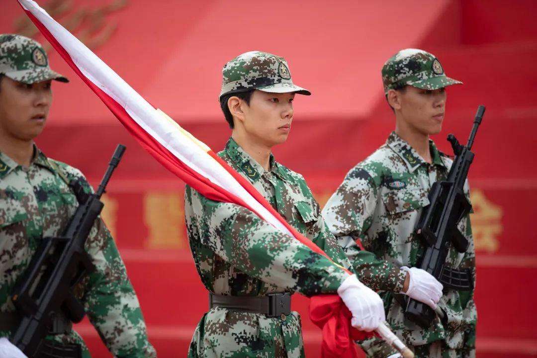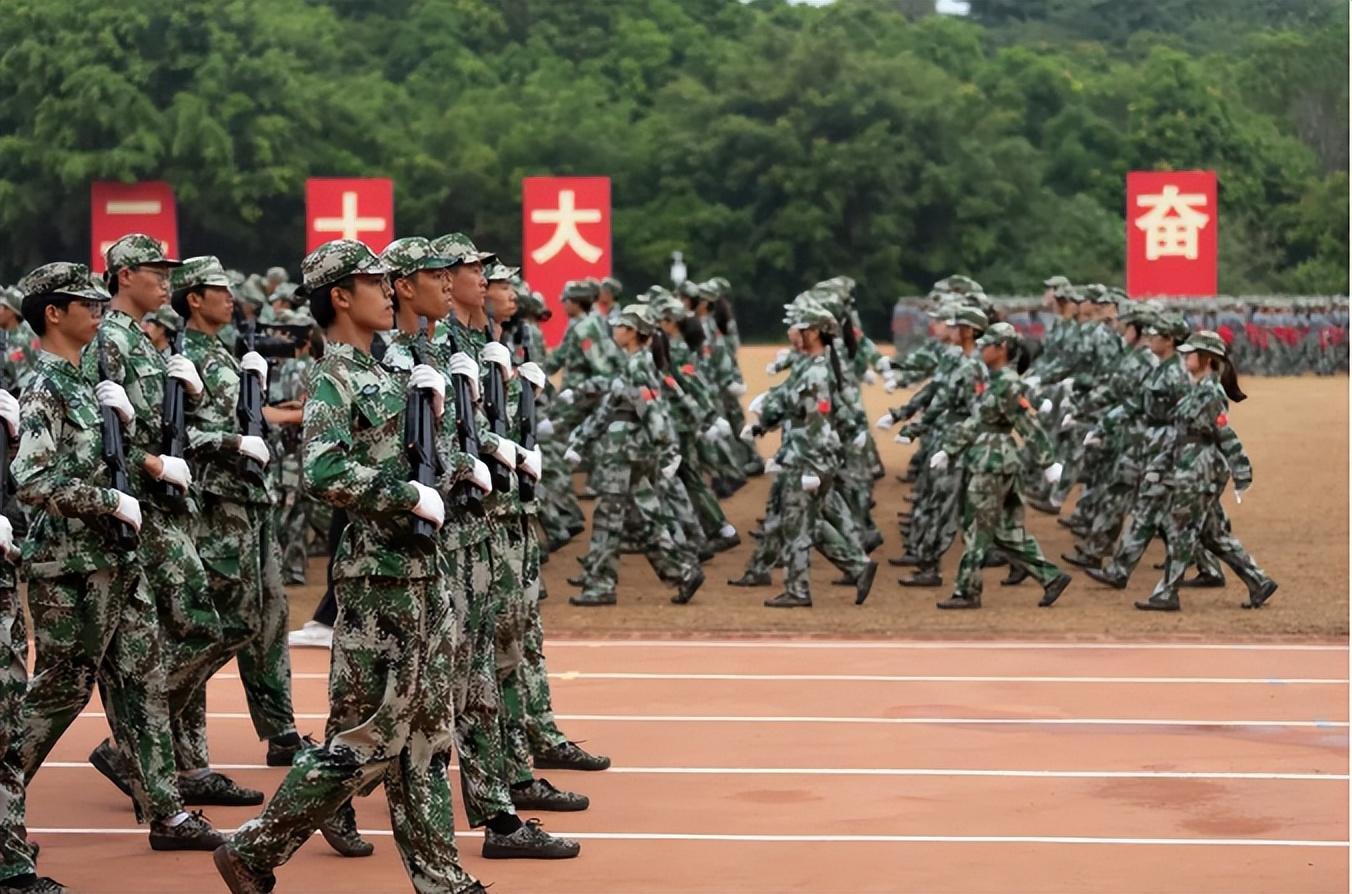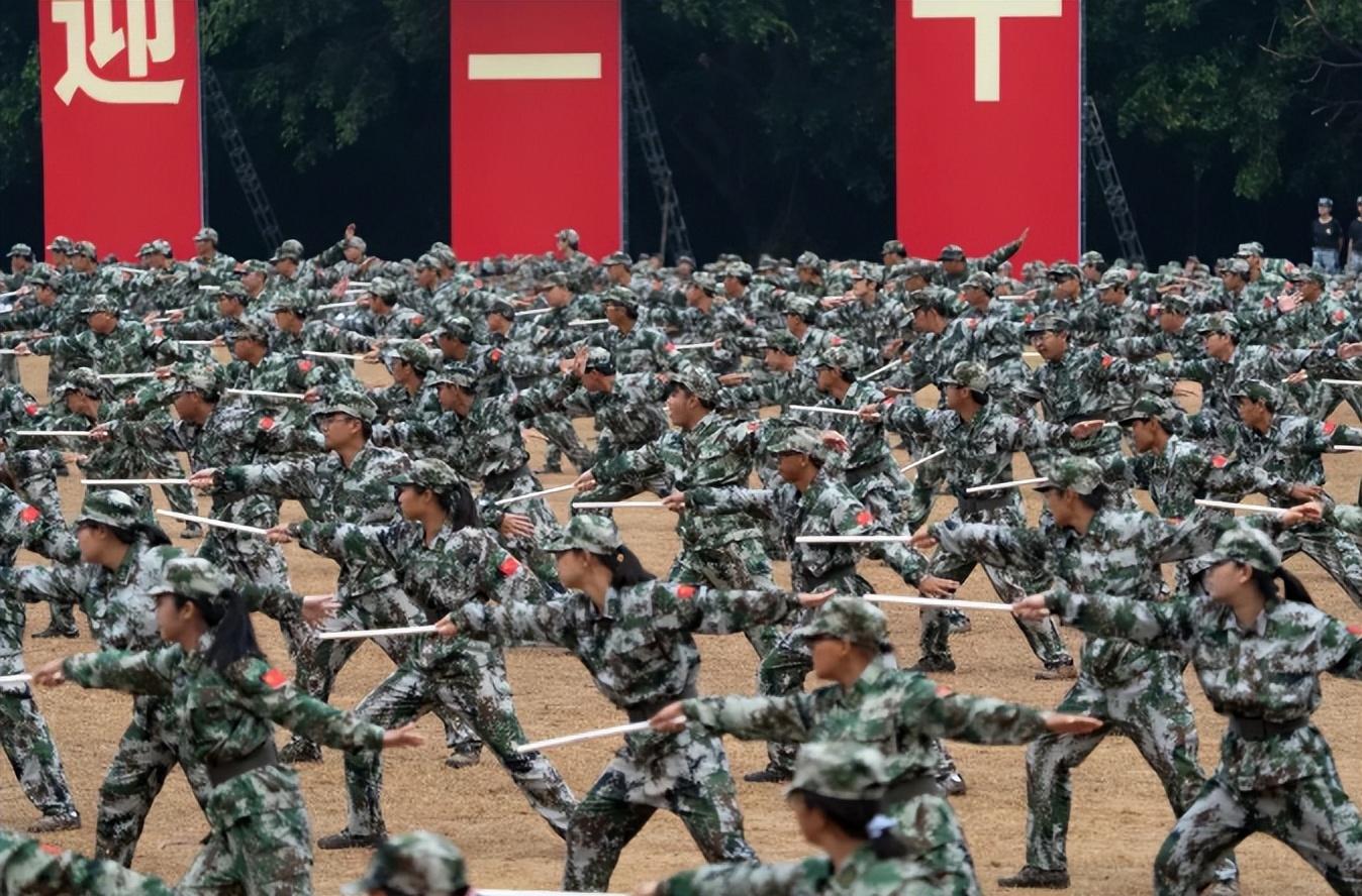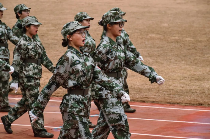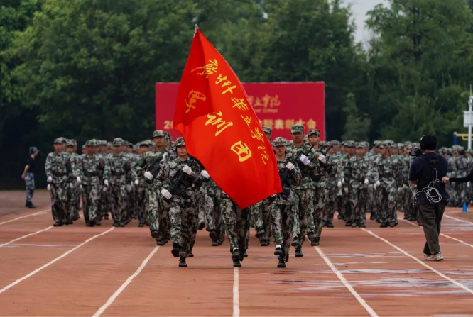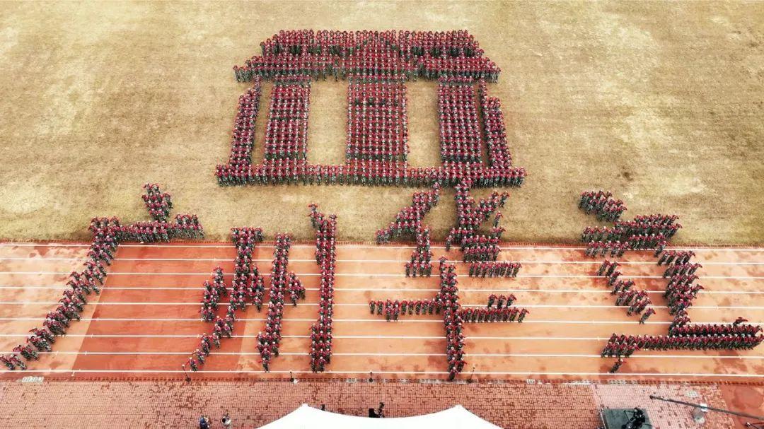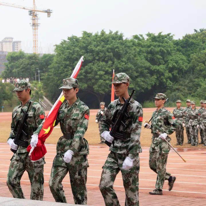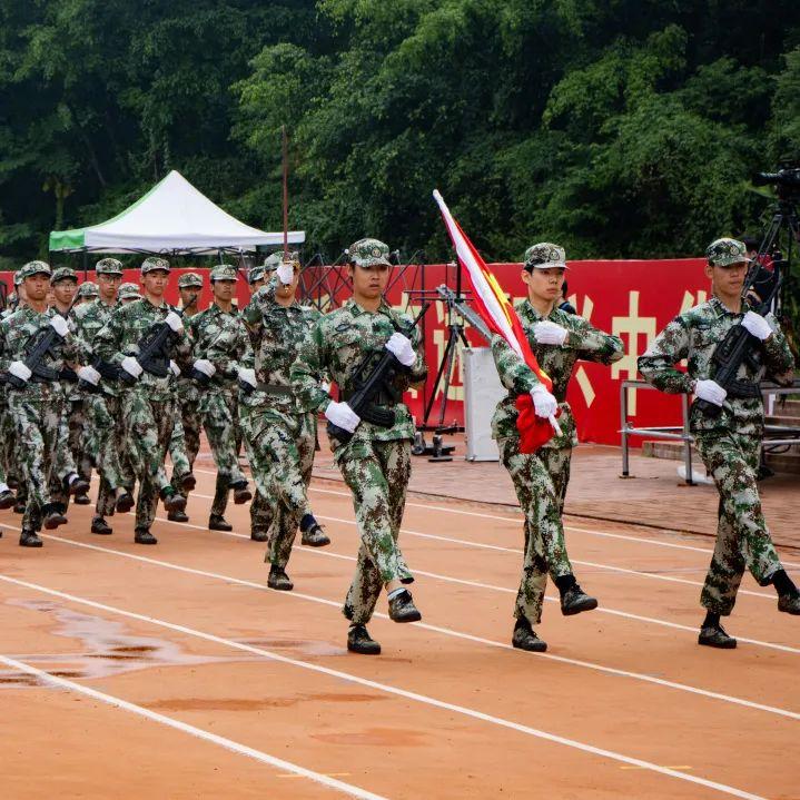 在庄严的升旗仪式后,大一新生喊着统一嘹亮的口号,步履如山,稳健而整齐地走过主席台接受大家检阅。