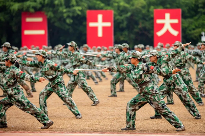 他们激情四射、斗志昂扬,彰显出军人的气魄,看他们整齐划一的动作,满腔热血的口号,将儿郎的赤子雄心表现得淋漓尽致,这群朝气蓬勃、风华正茂的青春少年尽显英雄本色。