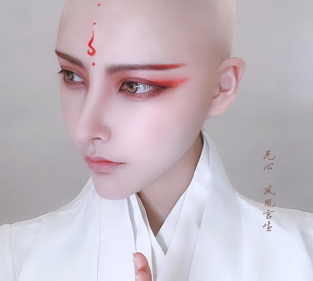 除了萧瑟之外,夙胤言生还cos了同作品中的无心和尚。虽然还原度赶不上萧瑟,少了无心身上的邪气,但已经超越了市面上大多数的无心cos。毕竟无心作为一个化着妖艳妆容,浑身充满邪气的和尚,还原难度非常高。coser能够把握其中的度,还原出无心的英俊,已经很不容易了。