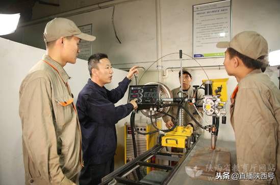 全国技术能手、陕西带徒名师、陕西铁路工程职业技术学院叱培洲技能大师(左二)指导学生实践