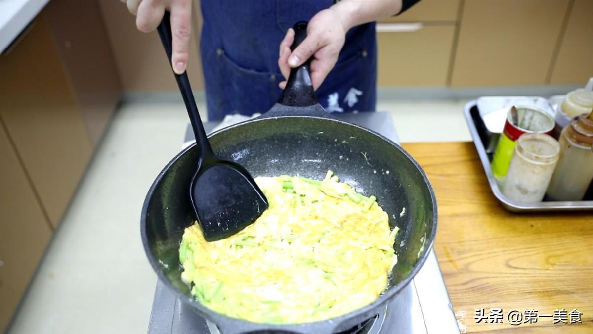 外层的鸡蛋焦香,里面的鸡蛋滑嫩,还能完全锁住蒜苔的清甜清香。
