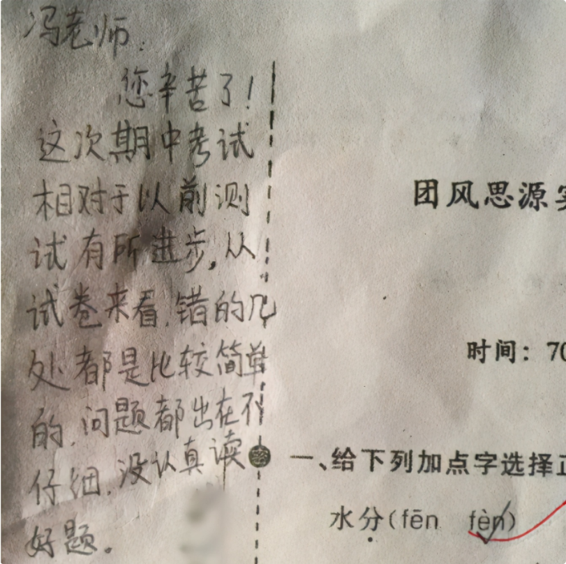 家长在试卷上的留言走红,老师看后倍感欣慰,不愧是学霸的父母。学生的学习是循序渐进的,成绩好的时候,希望家长们能够教育学生不要骄傲,成绩不理想的时候,也希望各位家长能够和学生一起找到成绩不理想的原因。