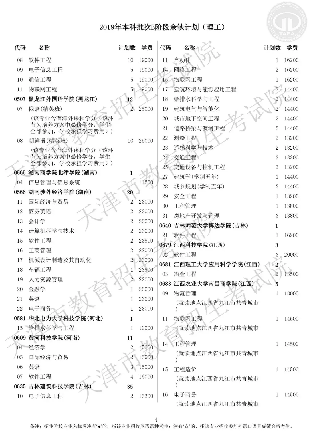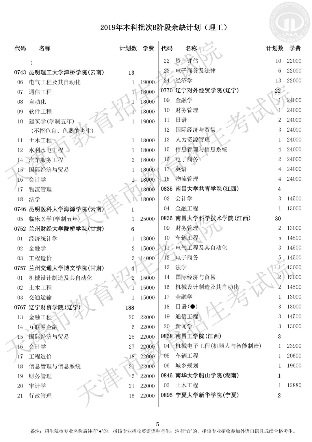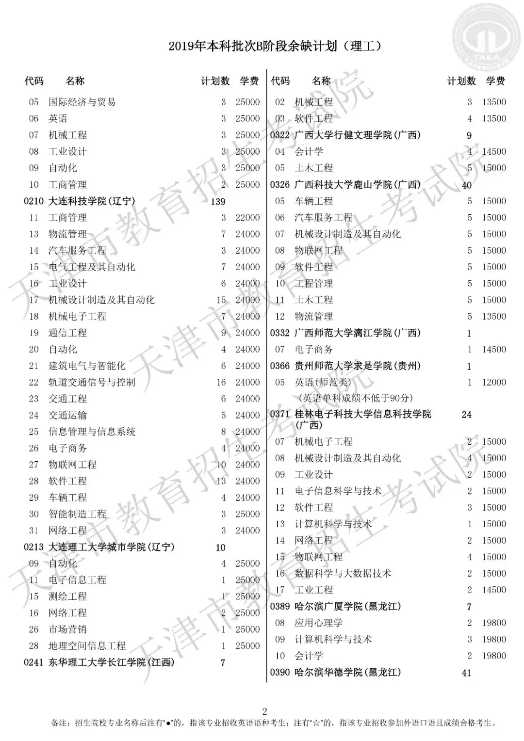 普通本科批次B阶段征询志愿院校余缺计划表(理工)