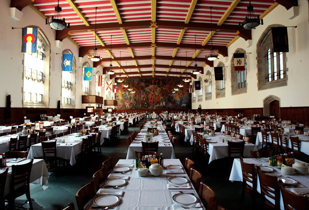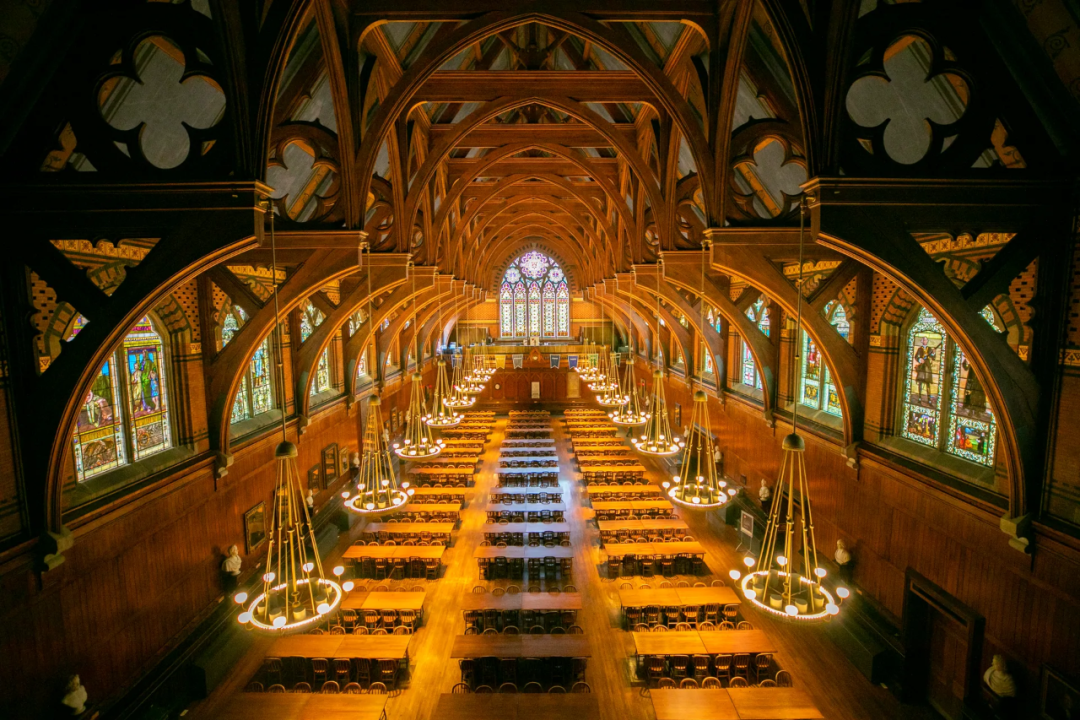耶鲁大学14个住宿学院都有自己的用餐场所,但这个公共餐厅是其中最壮观的。并且对校内所有人开放,包括本科生和研究生,以及教职员工。