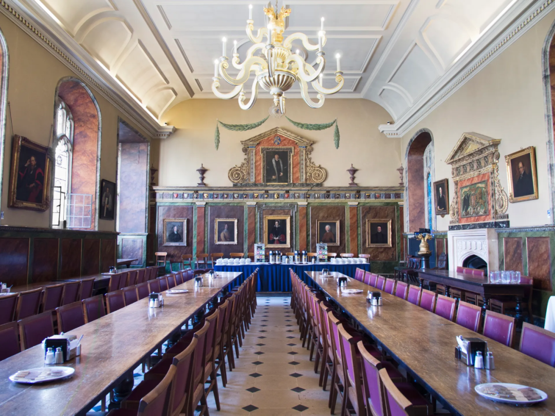 Trinity College的这个餐厅很容易被误认为是皇家宴会厅——尤其是紫色的椅子。华丽的造型和各种细节引人注目,并且这个餐厅因使用的都是当地采购的原材料而自豪。