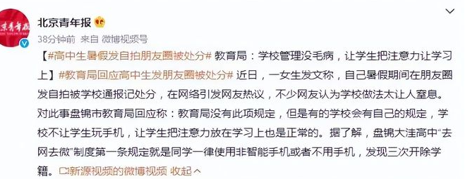 对于这个处罚她觉得很委屈,所以把事情经过发到了网上,希望相关部门能评评理,结果当地教育局却认为,学校这么管没毛病,学生应该把注意力全部放在学习上。对此网友发表不同的看法。