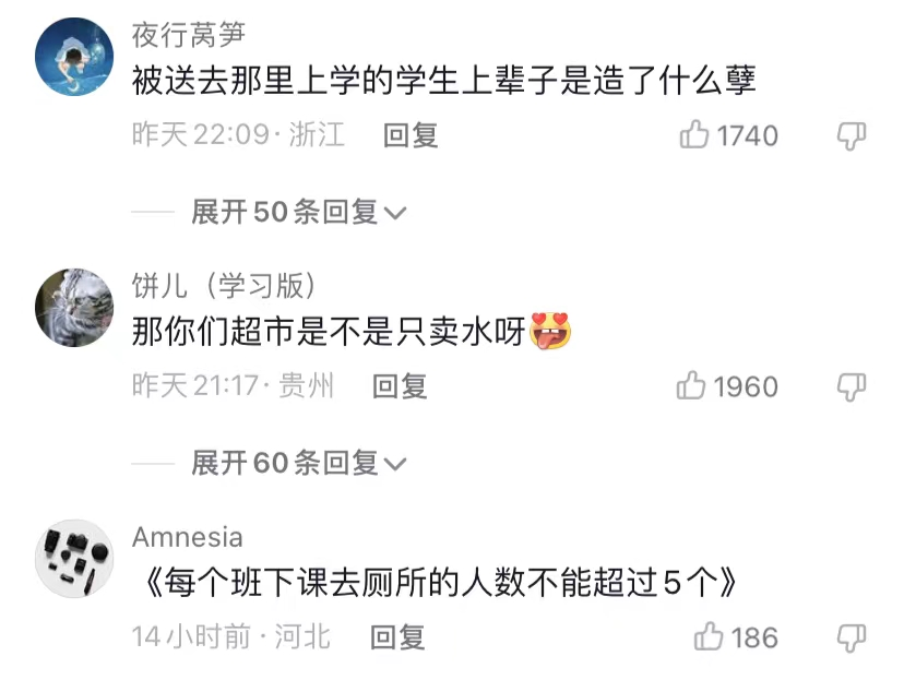 据了解,对于学生上厕所也有要求,每个班级下课上厕所的人数不能超过五个,这简直比看手机还要无厘头。人有三急还要管,这有点不合常规啊。