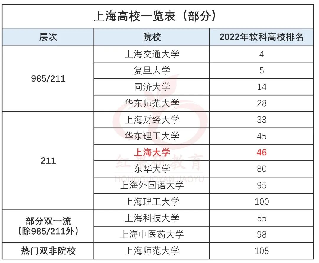 先来看看上海地区都有哪些高校。