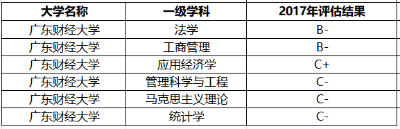 广财有6个学科参评,其中2个B类学科(法学、工商管理)