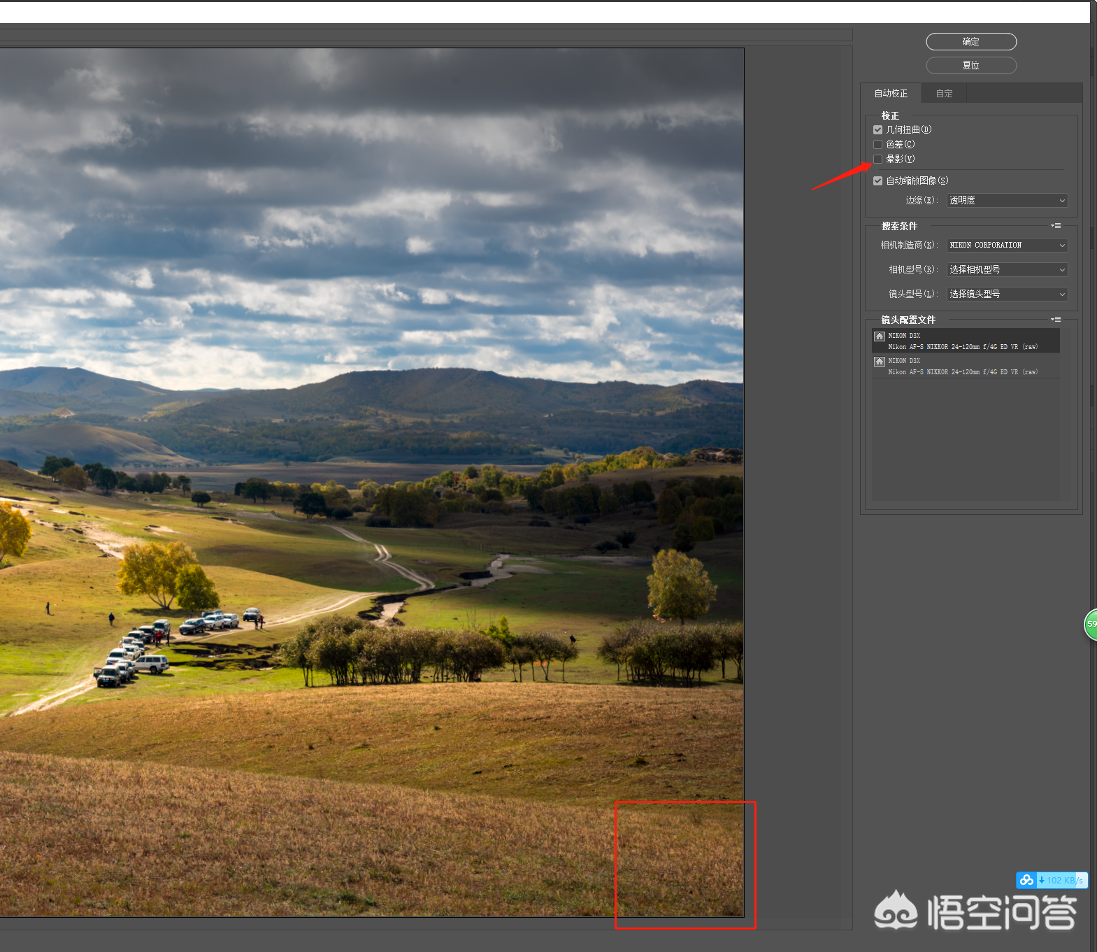 2、进入镜头校准工具后,勾选晕影工具,勾选后会自动校准图片暗角,以及镜头畸变。