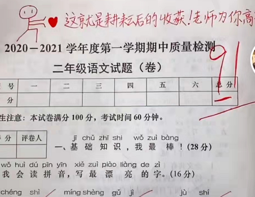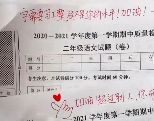 老师不可能照顾到每个学生的心情,不过年轻的老师总是会有自己的方法,比如:老师会在学生的卷子上写下评语,或鼓励、或指导,平平无奇的话可能在学生心理起不到任何作用。