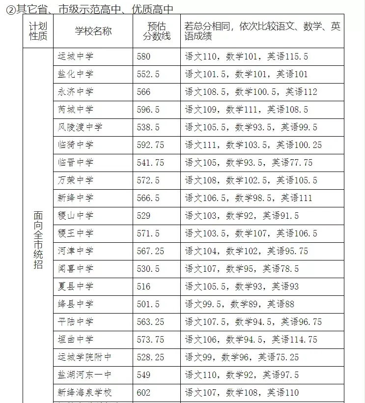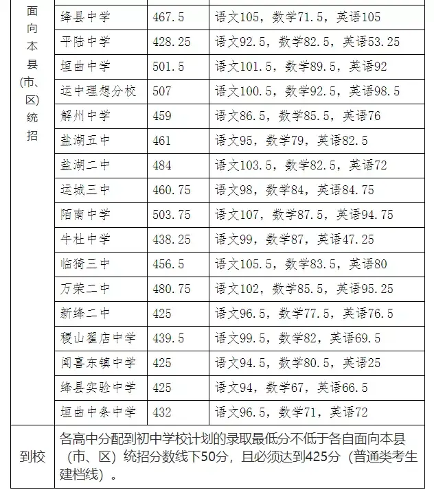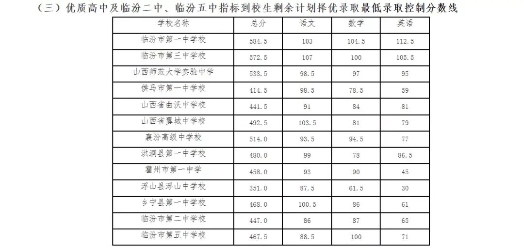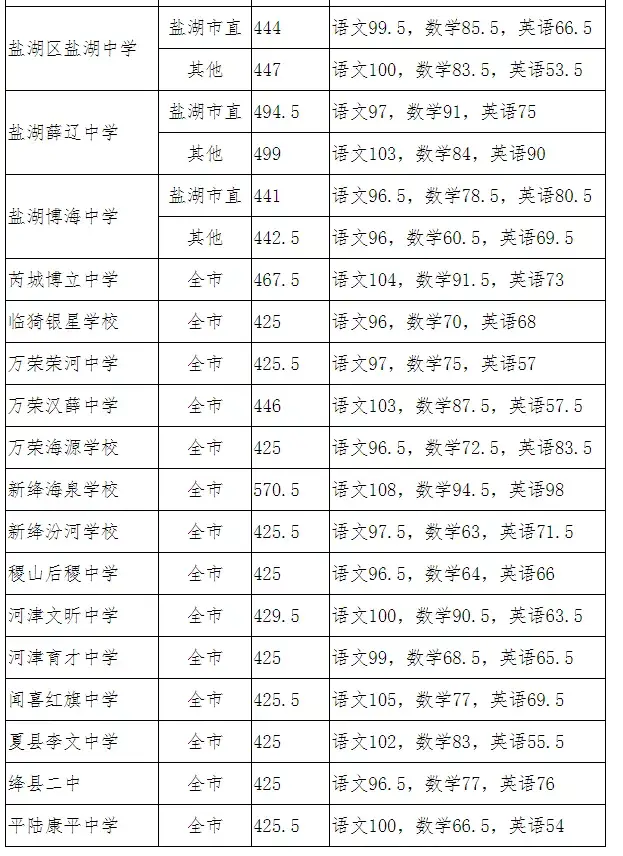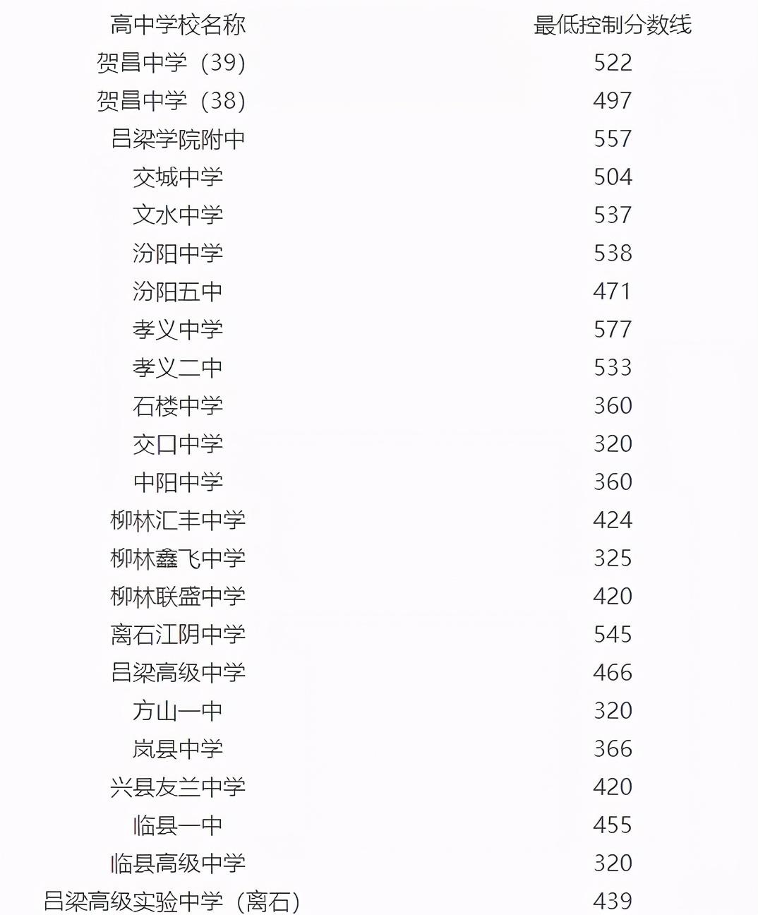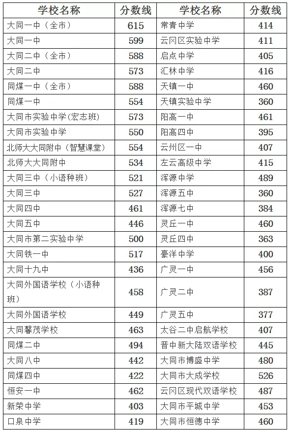山西大学附属中学晋中学校(除榆次外十县生源):600分。
