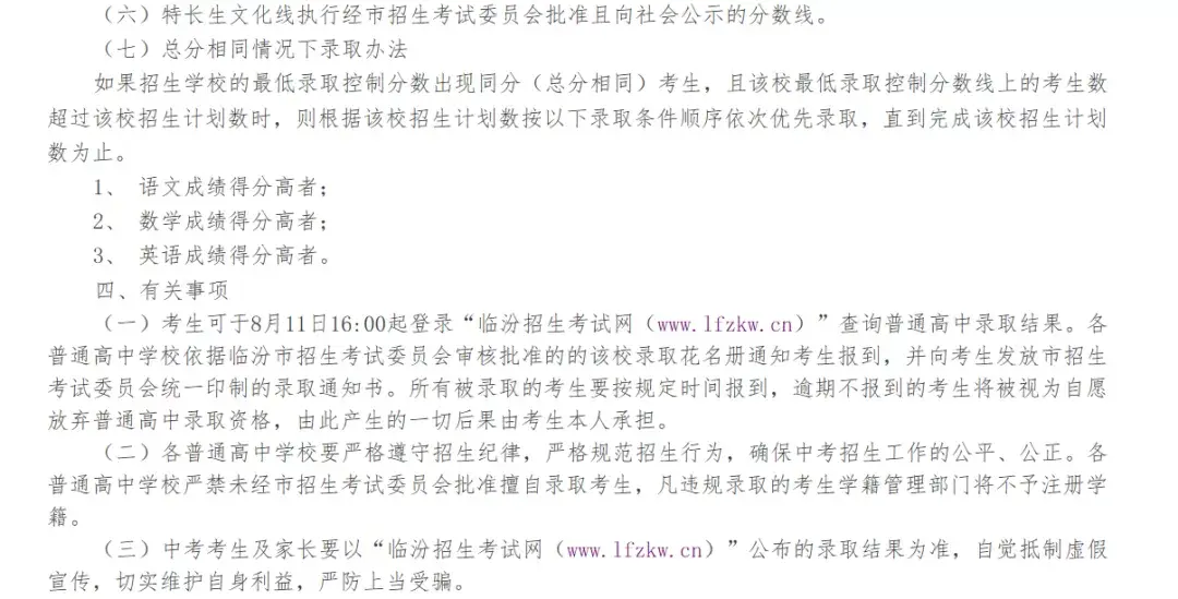 全市考生于8月17日—18日到原初中毕业学校领取录取通知书。