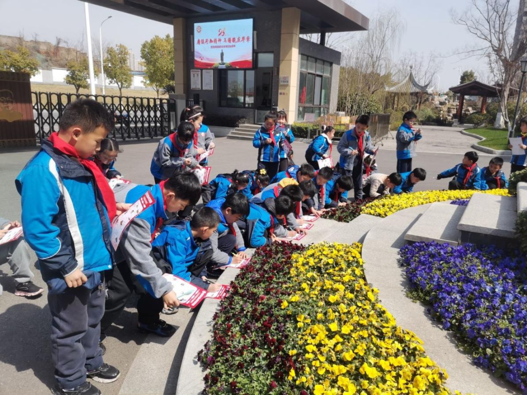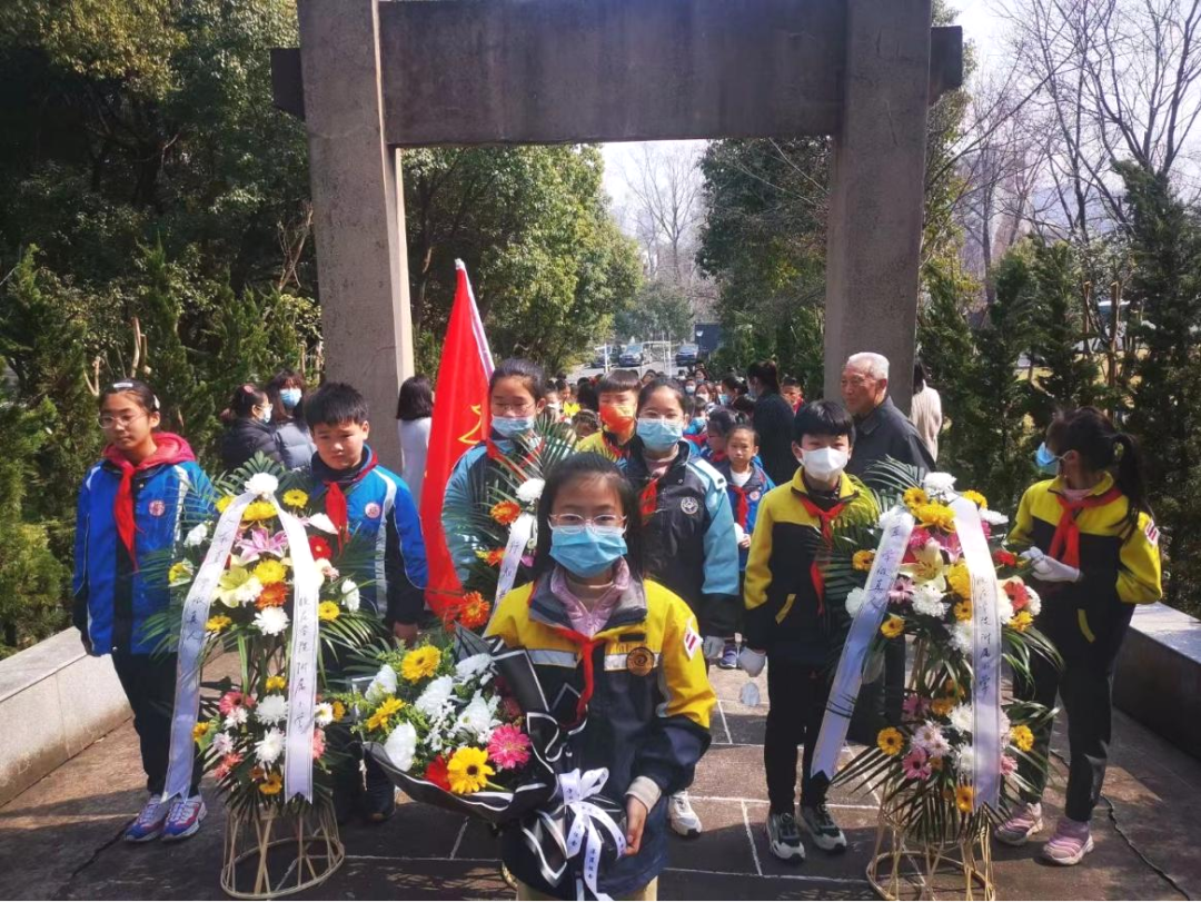 参观结束后,陶娃代表们移步行知墓参加纪念仪式,站在行知墓前,陶娃们向陶行知爷爷献花篮、敬队礼、深鞠躬,以表对陶行知爷爷最崇高的敬意,我们定不负陶行知爷爷的期许,热爱祖国,好好学习,天天向上!最后陶娃们绕行知墓一圈为陶行知爷爷献上亲手制作的小白花。