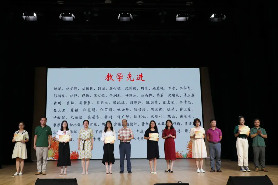 莫忻娟、屈荷军、张政、肖晨、顾军副校长分别宣布了教学先进、优秀正副班主任、优秀班集体、“青蓝工程”优秀师徒、金鸡湖新苗和新学期师徒结对名单。丰硕的教育教学成果令人振奋,更推动着一批批金校人砥砺前行。