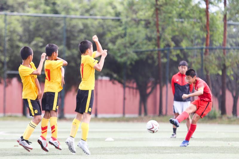 2020年5月30日,恒大足球学校校内联赛第1轮,U11狼队(黄)对阵U12龙队(红)