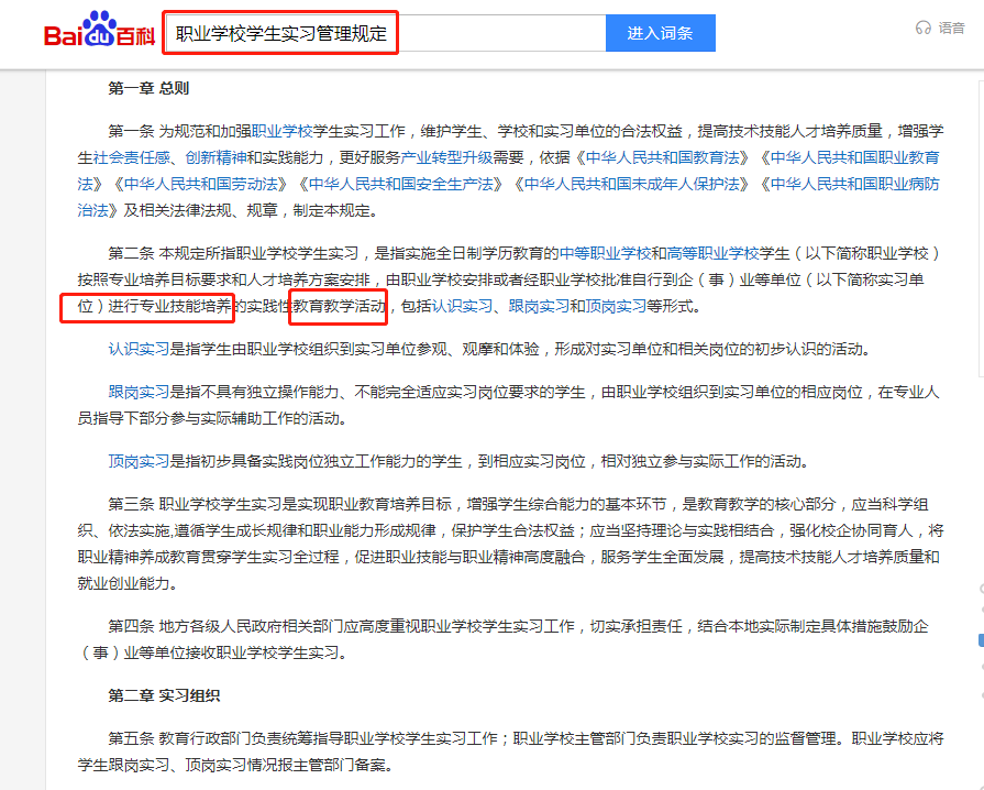 “由学校安排或批准,自行到企业单位进行,专业技能培养的,教育教学活动”