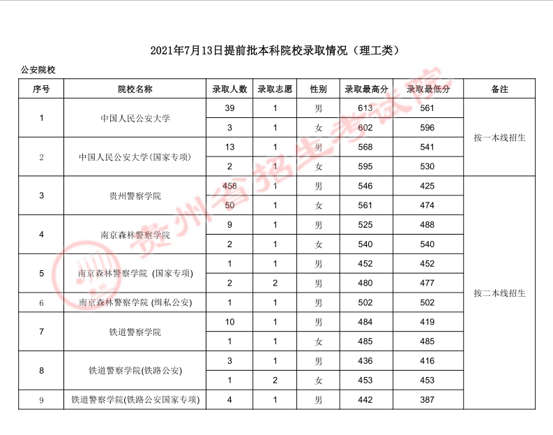 理工类公安院校(男)录取分数线最高的为中国人民公安大学,录取最低分为561。录取分数线最低的为铁道警察学院(铁路公安国家专项),录取最低分为387分。