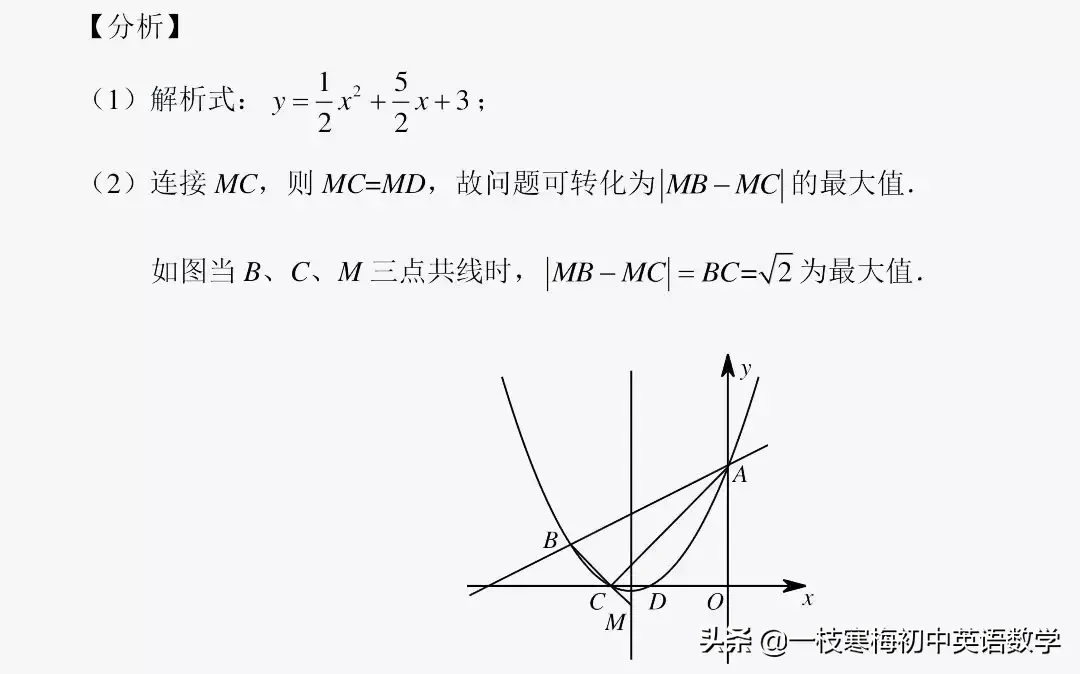 (2)在抛物线对称轴l上找一点M,使MB-MD的绝对值最大,并求出这个最大值;