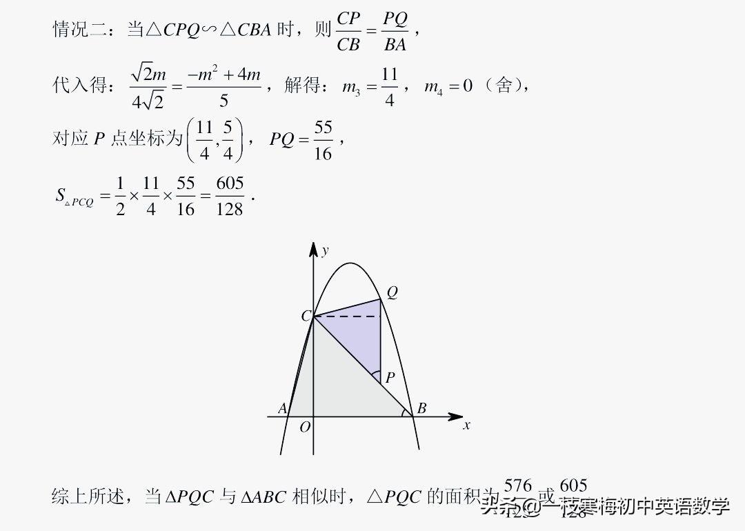 (2)点P为线段BC上一动点(点P不与点B,C重合),过点P作x轴的垂线交(1)中的抛物线于点Q,当△PQC与△ABC相似时,求△PQC的面积.