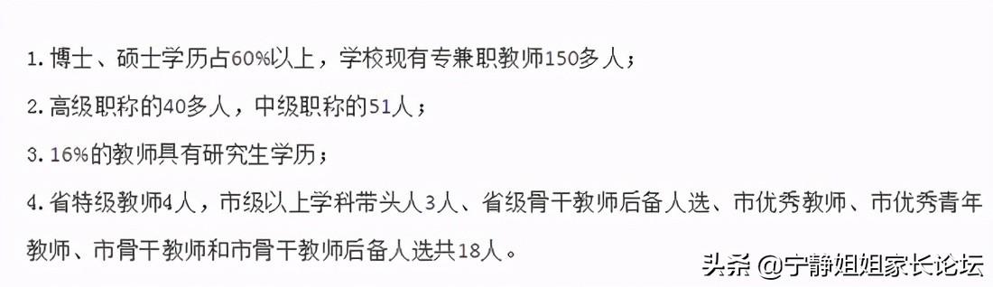 学校现有教职工人数397人,教师队伍以省市重点中学教师为主,特级教师、学科带头人、高级教师已超50%。