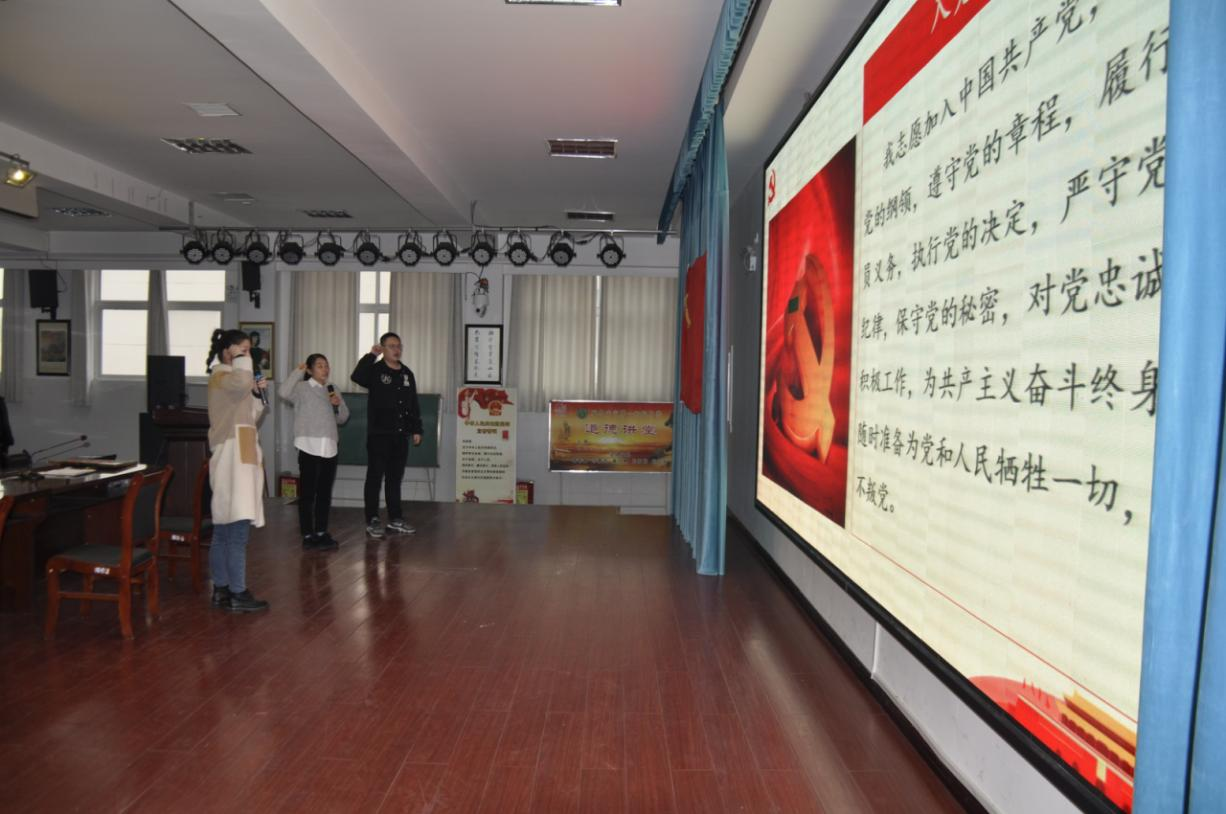 为做好发展党员工作,提高发展党员质量,优化党员队伍结构,学校于3月15日下午举行了新加入党组织的2名教师的入党宣誓仪式。首先,根据党章和《中国共产党员发展党员工作细则》的规定和要求,校党委书记孙明同志宣读关于同意接纳后勤管理党支部陈伟丽同志为预备党员、教学管理党支部岳子阳同志转为正式党员的批复。接下来全体党员干部起立奏唱《国际歌》,最后在优秀共产党员梁书培同志的领誓下,陈伟丽、岳子阳两位同志进行了庄严宣誓,他们表示将会用实际行动来兑现今天的铮铮誓言,向优秀共产党员学习,严格履行党章规定的各项义务,正确行使党章赋予的权利,严守党的纪律,充分发挥共产党员的先锋模范作用,为学校基层党组织建设贡献力量!