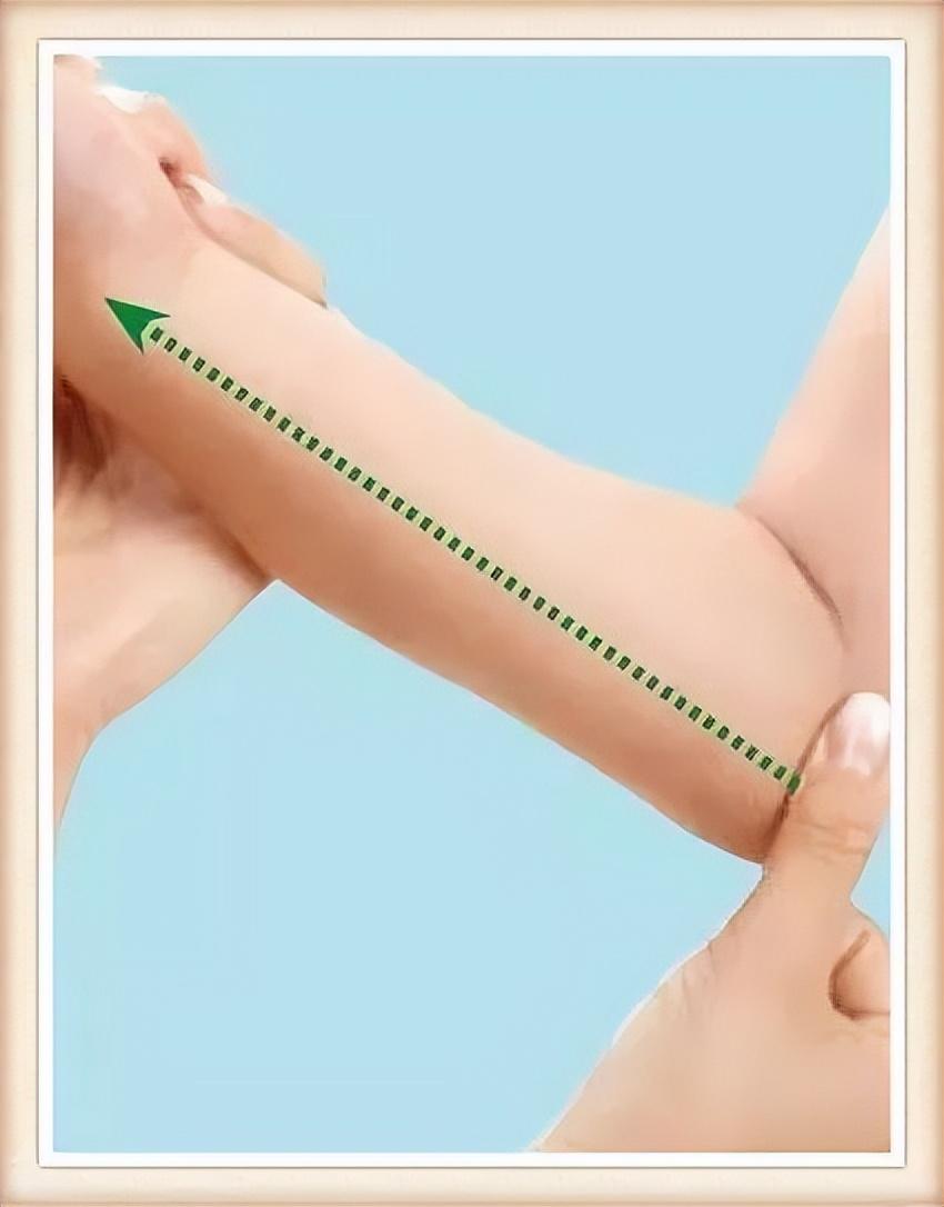 用一只手握住孩子手腕,用另一只手的拇指或食、中二指螺纹面从肘部下推到腕部,反复操作。