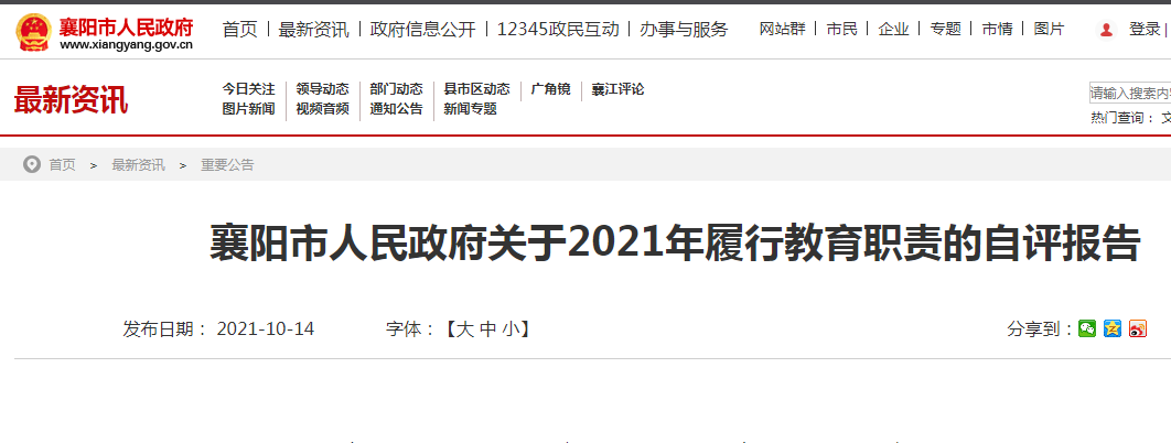 10月14日,襄阳市政府网站刊登《襄阳市人民政府关于2021年履行教育职责的自评报告》,《自评报告》显示:全市共有各级各类学校1710所,其中高校5所、中职学校27所、普通高中42所、初中206所、小学471所、特殊教育学校7所、幼儿园952所。中间提到了“公参民”学校治理问题,来一起看看——