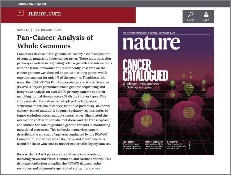 2020年2月,PCAWG(Pan-Cancer Analysis of Whole Genomes,泛癌全基因组分析)联盟在《Nature》正刊发表了6篇论文,合工大杨善林院士和丁帅教授是集体作者的成员。