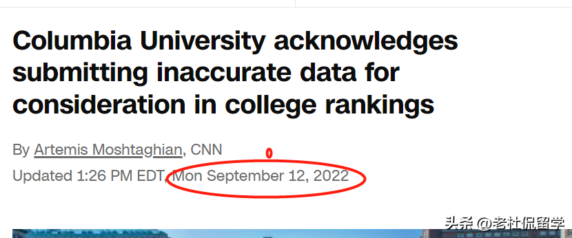 种种迹象说明,“哥大”将缺席。然而9月12号US News & World Report发布的排名,哥大在排名内,而US News 并没有给原因。老杜多方查找,在CNN 9月12号的一篇文章里看到相关信息。
