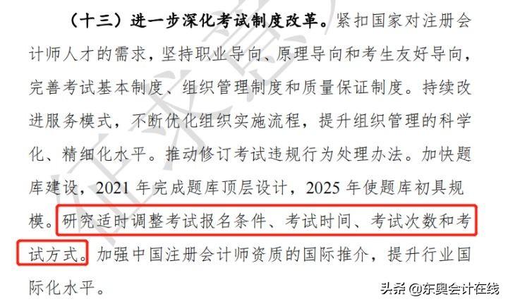 “一年多考”绝不仅是初级会计考试,还有注会考试。在《注册会计师行业发展规划(2021—2025 年)(征求意见稿)》也提出了“研究适时调整考试报名条件、考试时间、考试次数和考 试方式。”
