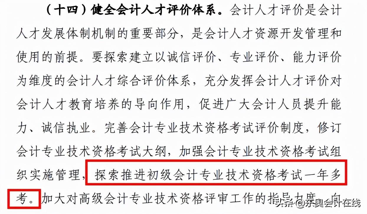 近日,财政部发布了:“关于征求《会计行业人才发展规划(2021-2025)(征求意见稿)》意见的函”,其中提出了:探索推进初级会计专业技术资格考试一年多考。