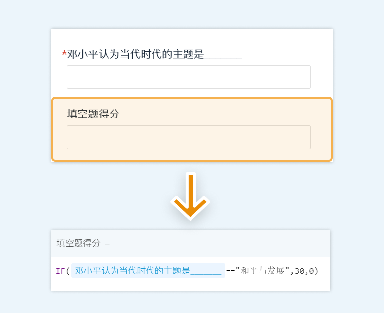 题目选择「单行文本」或「多行文本」字段,得分为「数字字段」;