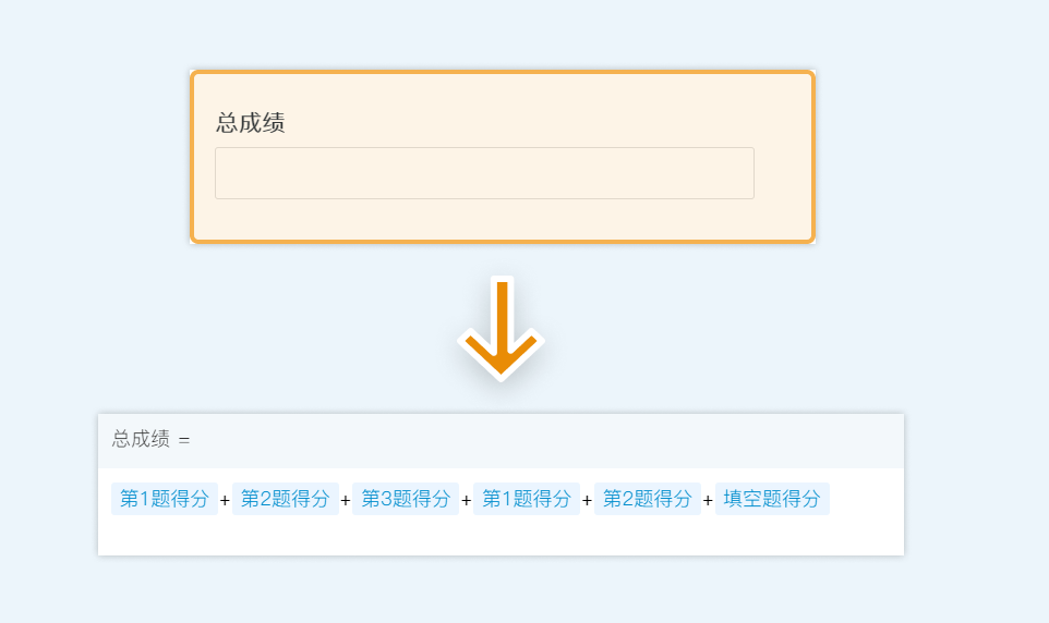插入表单字段选择总成绩字段,即可在自定页面展示总成绩: