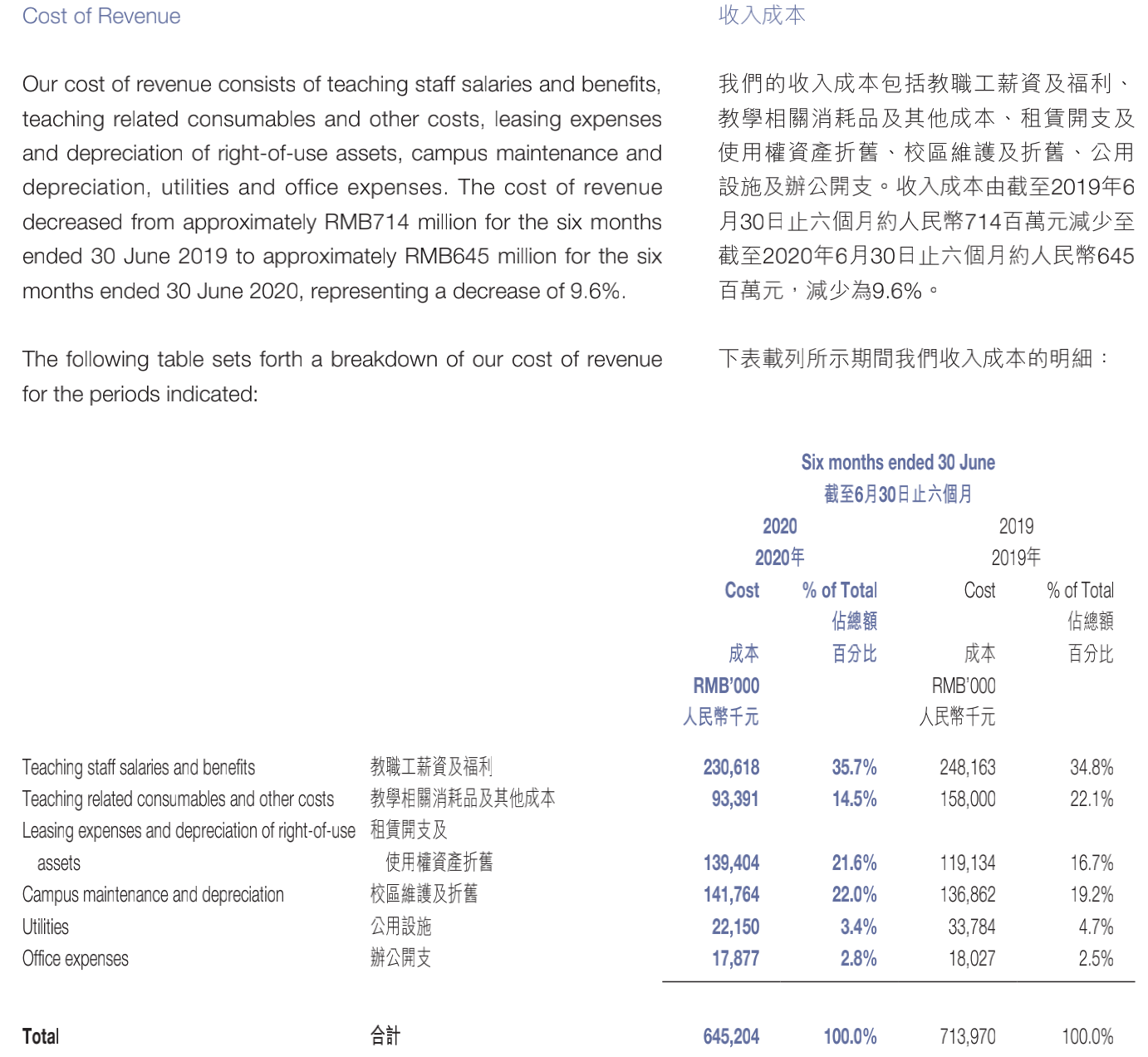 根据与该等高等教育机构订立的合作协议,高等教育机构通常负责设计课程、指派教师到学校工作、为符合相关要求的学生授出经相关政府部门认可的文凭及学位。中国东方教育负责提供符合教学要求的场所及设施,且提供教师与指派教师共同组织教育工作。该等高等教育机构通常收取公司所收取学费的30%至60%。合作协议的期限一般为三至六年,可经双方同意后重续。