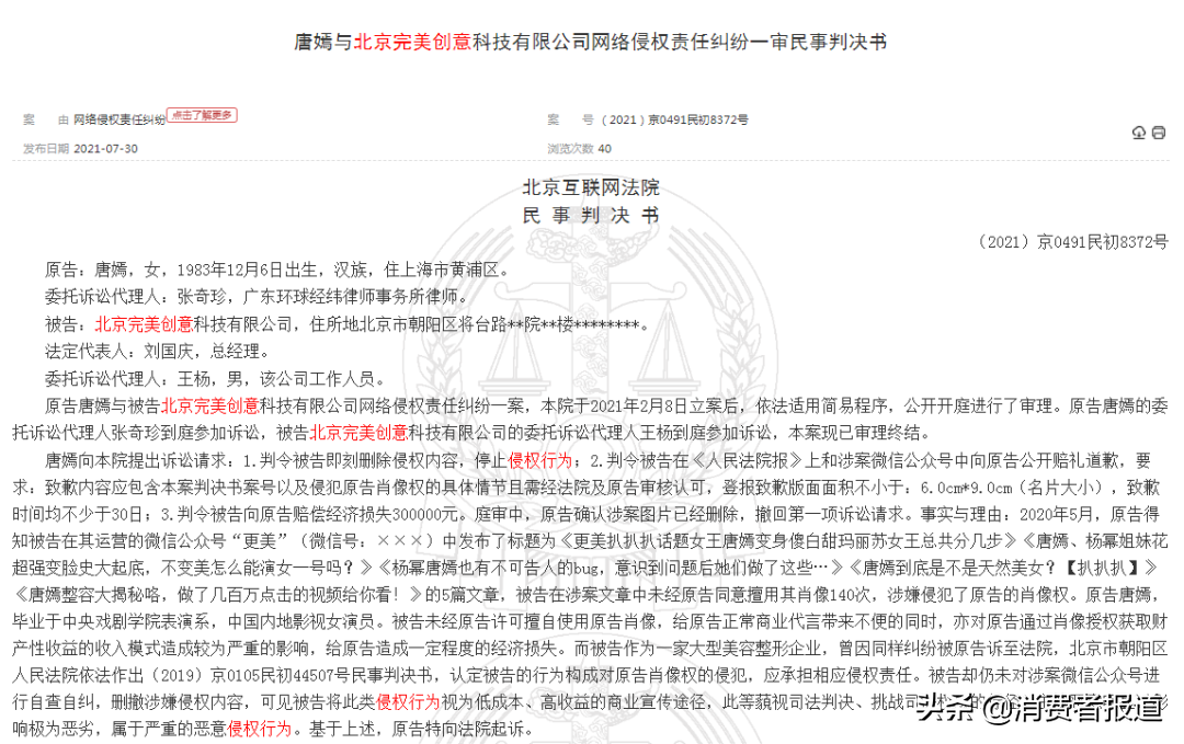 据人民网评论称:“医美平台侵犯明星肖像权案件屡见不鲜。舆论分析,医美平台通过新媒体内容吸引流量转化用户,而明星则成为‘不二选择’,加之网络侵犯明星肖像权的违法成本较低,而维权成本又相对较高,这或许是造成此类案件频发的原因。”