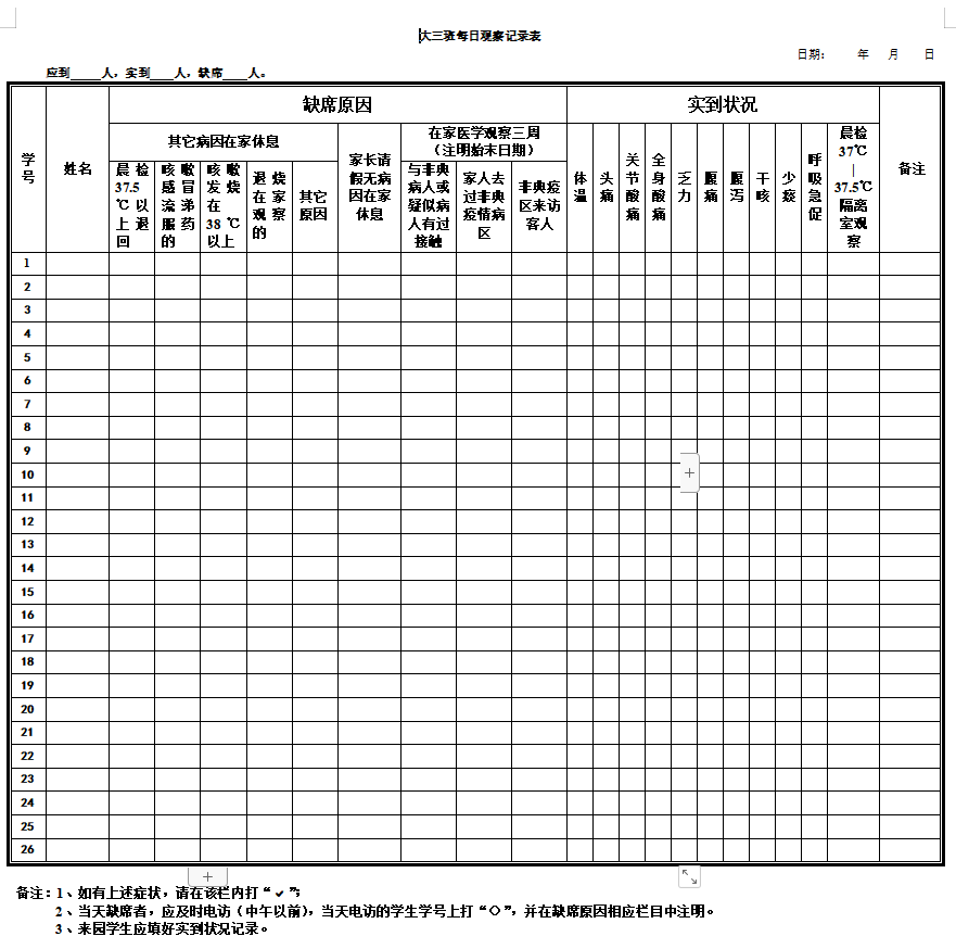 ◆ 做好观察班级和部门的晨检、午检、晚检