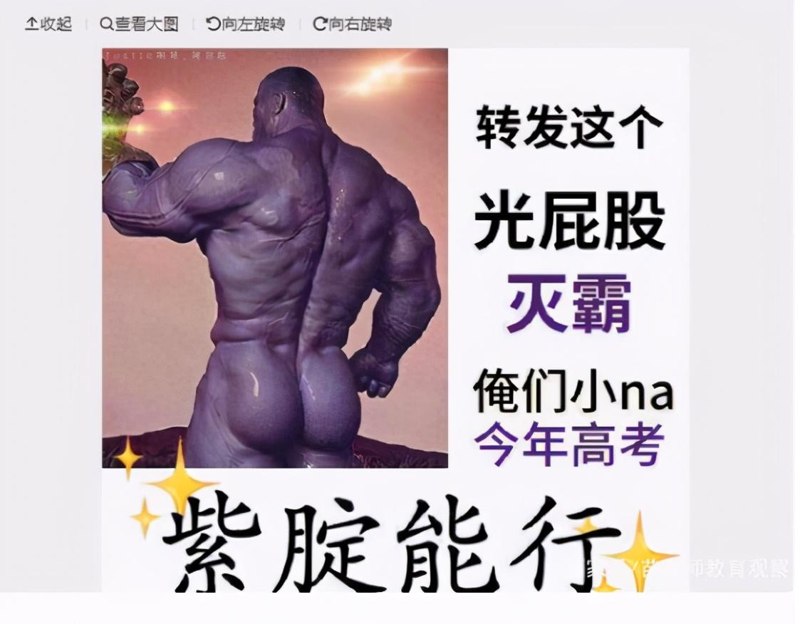 解释有些令人哭笑不得,原来孩子穿上紫色的内裤就是“紫腚能行”,也就是考试“指定能行”!