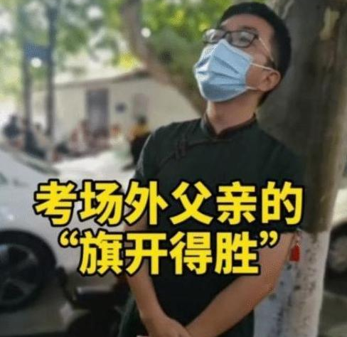 而信奉“旗开得胜”的不止妈妈,还有下面这位送考老爸。