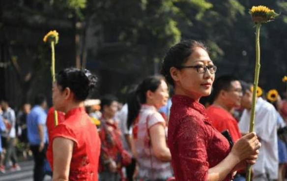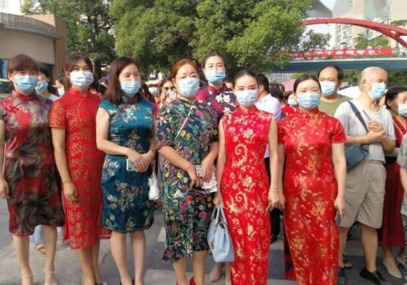 和电视剧里的情节一样,每年高考,我们都能在考场外截获一批“旗袍妈妈”,大家穿着艳丽的旗袍站在人群里,自然也形成了一道靓丽的风景线。