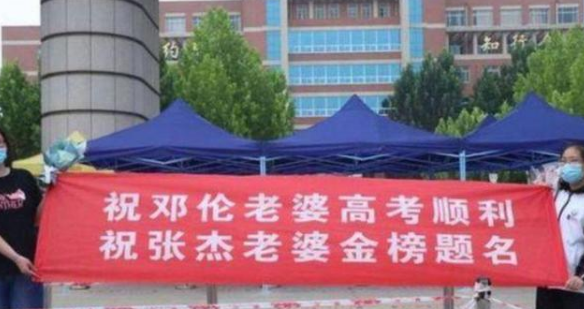 许多高中生都有自己喜欢的明星,备考时,家长们都怕孩子沉迷于追星而耽误考试,但高考时,一些父母也别出心裁地制作了另类高考横幅来为孩子们加油。