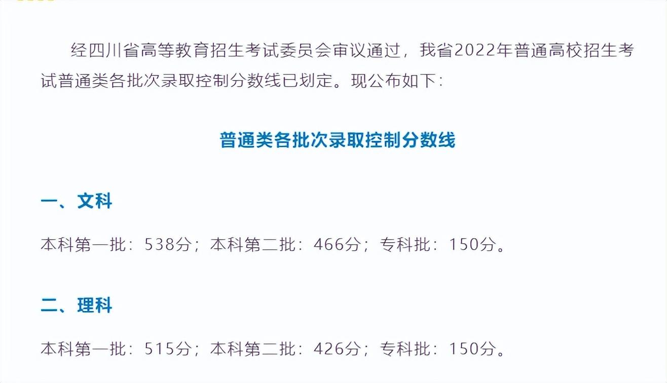 刚刚,四川省公布2022年高考录取控制分数线,详情如下: