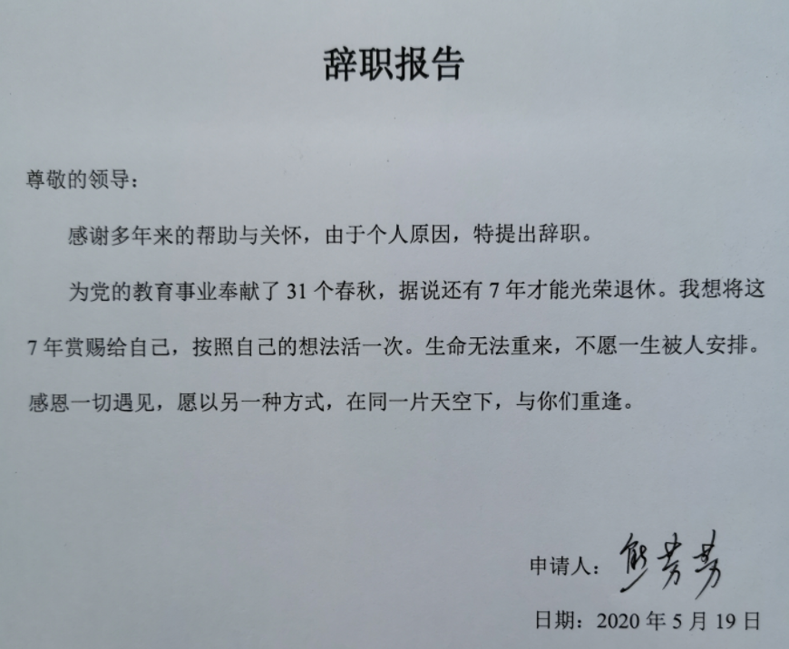 31年的教学生涯,熊芳芳已经可以说是桃李满天下了,获得多次荣誉、在教育界已然有所成就的她,为什么突然选择辞职呢?