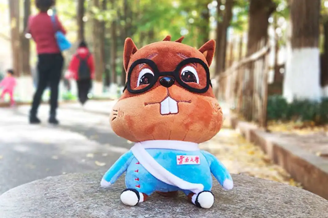 银杏是云南大学的特色,以银杏树上的小松鼠作为灵感,设计了以松鼠为原型的公仔,穿着中国复古长衫的,肩上披着一块长长的围巾,一眼看上去有着非常明显的文人气息,也展现出云大百年历史文化底蕴的气息。