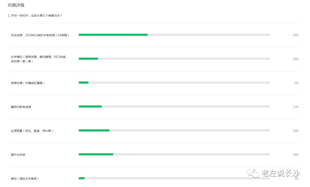 5月16日,老左发起了一个投票,如何评价一所初中,现在已经结束,投票结果如下: