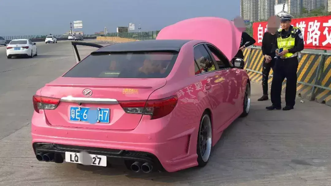 原来,莫先生是中山某汽修店的员工,难得放假特意跟朋友借了这辆车,中午时分载着同事一块来珠海,打算过大海买点年货回肇庆过年。在澳门逛了两三个小时后,该买的笋盘都买了,莫先生觉得是时候回去了,于是驾车返回中山。粉色的车在路上自然是拉风,这让莫先生脸上贴金了,只不过还没出珠海就被交警查获,吃了张1000元的罚单。▼