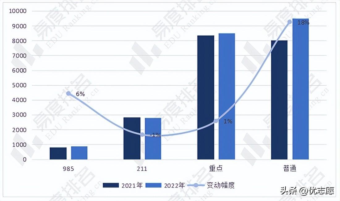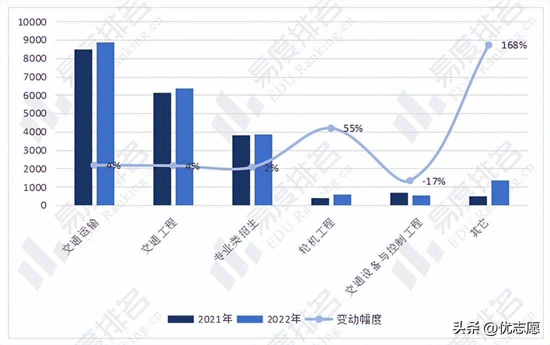 小优会通过2021年和2022年全国高考普通本科批的招生计划数来分析交通运输类专业的招生变动情况。本文分析数据仅含普通本科批招生数据,不含提前批,强基计划等特殊招生方式。